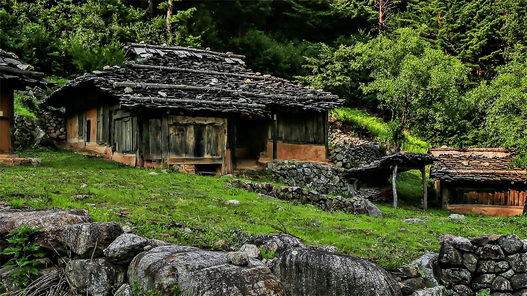 ▲ 정말 오래전에 촬영한 사진입니다. 제가 태어난 집은 1960년대 이렇게 지어진 강원도의 산촌에서 쉽게 만날 수 있던 북방식 구조의 너와집이었습니다. 굴피지붕을 얹은 굴피집에서도 살았었지요. 이런 집의 주변엔 달래와 냉이, 씀바귀가 봄이면 정말 많았습니다.